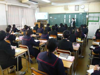 5限、2年3組は社会、幕末の歴史です。薩摩藩と長州藩が取り上げられていました。2年4組は国語、敬語表現について、先日の2年2組の研究授業の内容から、さらに一歩進んだ表現の学習をしていました。