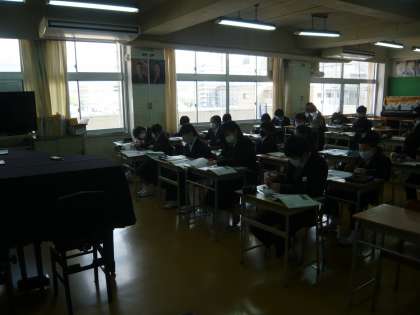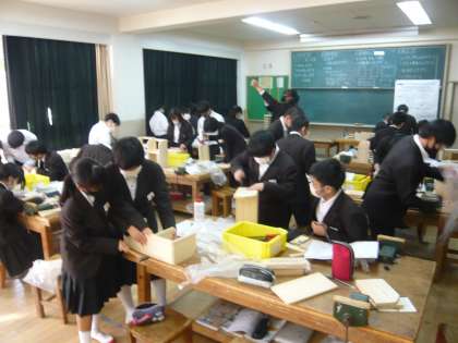 5限、1年3組は技術、木工作品は完成間近です。1年4組は音楽、箏について学習しています。