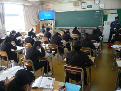 4限、1年1組は国語、情景描写の効果を考えるという授業です。1年2組は理科、溶解度曲線の問題に取り組んでいます。