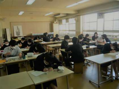 4限、3年1組は社会、都道府県名を答える問題に取り組んでいます。都道府県を覚えるのは、苦手そうです。3年2組は美術、それぞれの課題に向き合っています。美術の授業も残り少なくなってきました。