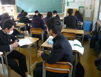 2限、3年3組は社会、地理の復習プリントです。3年4組は理科、入試対策です。