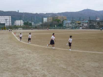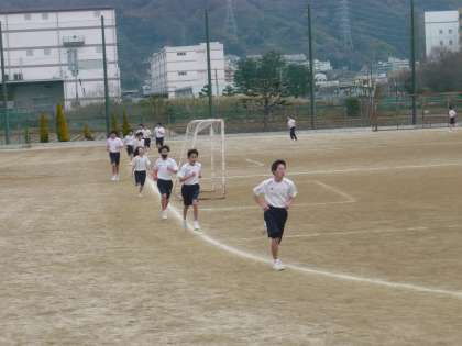 2年生男子も持久走に入っています。6限、2年3・4組男子の1500m走の様子です。