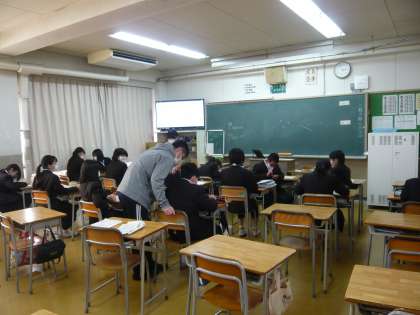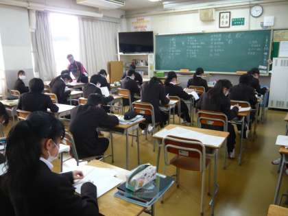 6限、1年1組は数学分割授業、立体図形について学習しています。1年2組は理科、ワーク等に取り組んでいます。