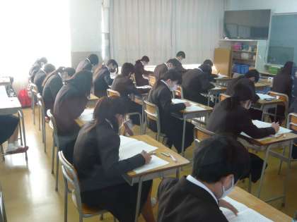 1年生は初めての実力テストです。1限目の1年1・2組の様子です。