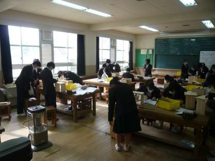 3限、1年1組は英語、実力テスト返しです。1年2組は技術、木工作品完成間近です。