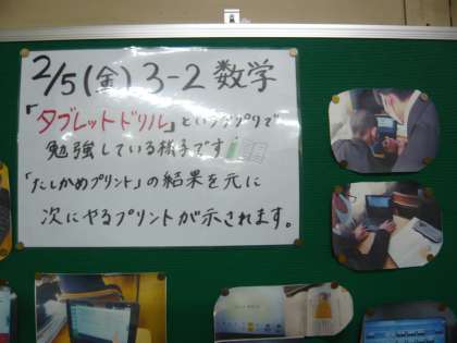 タブレットを活用した授業の様子を掲示しています。