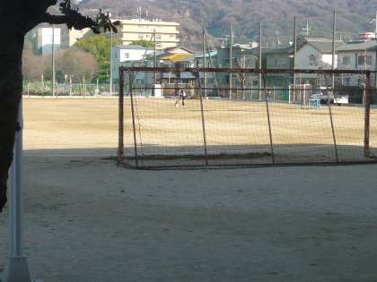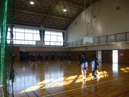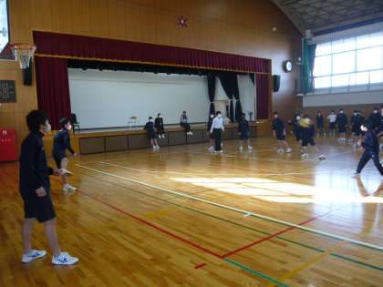 6限、2年3・4組の体育は、男女とも体育館でドッジボールをしていました。グラウンドは、昨日の雨の影響がまだ残っています。もう一人の体育の先生が、ていねいにグラウンドを整地し、トラックのラインを引いておられます。