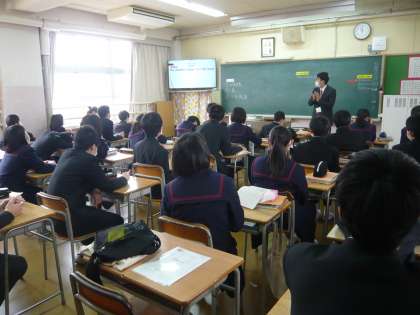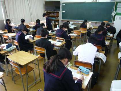 3限、2年1組は社会、テストに向けてプリントの問題に取り組んでいました。2年2組は英語、比較級の学習をしています。