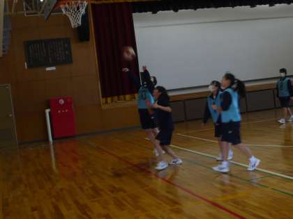 2限、2年3・4組の女子体育は、体育館でバスケットボールです。ゲームをしていました。