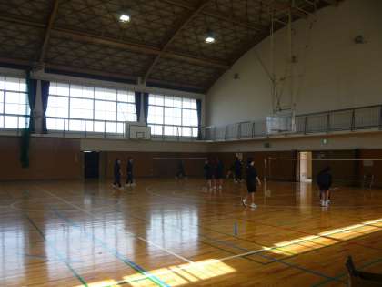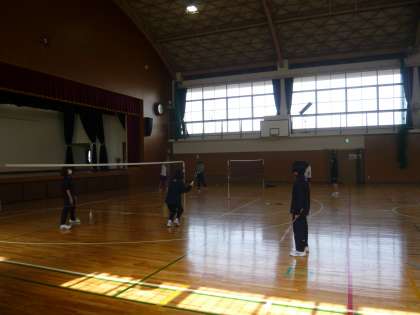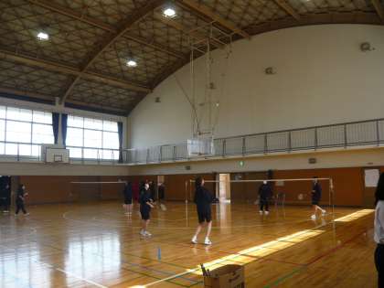 4限、3年1・2組の女子体育は、体育館でバドミントンです。ダブルスのゲームをしていました。体育の授業も残り少なくなってきました。