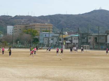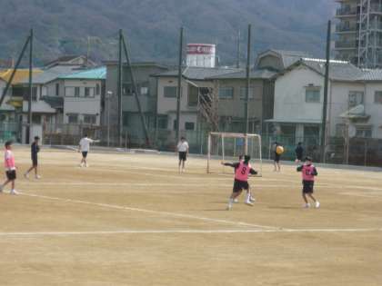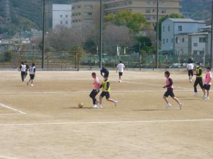 4限、3年1・2組の男子体育は、グラウンドでサッカーです。よい天気なので、運動も気持ちいいと思います。
