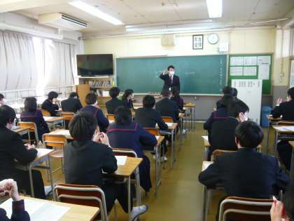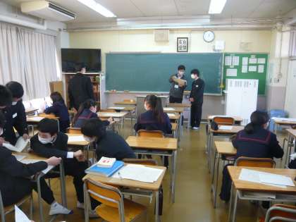 5限、2年3組は数学、テスト返しです。2年4組は英語、テストの解説を聞いています。