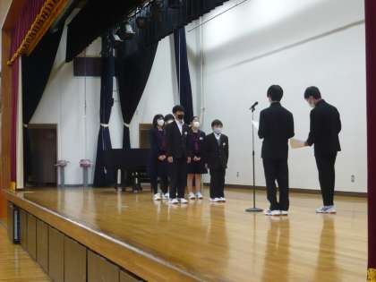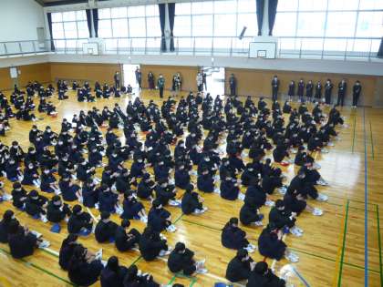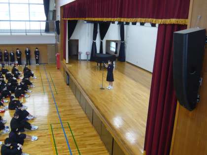 全校集会の様子の続きです。3学年そろっての全校集会は今日が最後になります。