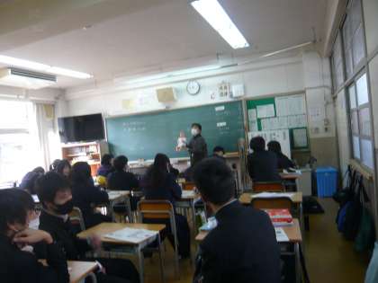 1限、3年3組は数学、入試対策です。3年4組は家庭、「わたしの成長をたどる」という題材で学習しています。