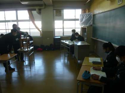 放課後、分割教室で、総会のリハーサルを行いました。