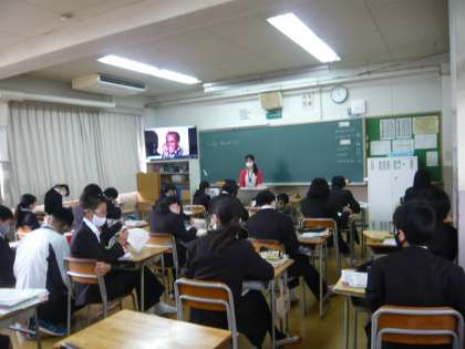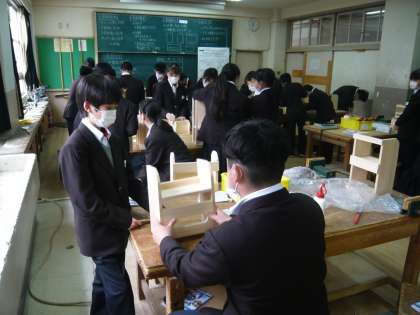 3限、1年1組は英語、ワークを使って学習しています。1年2組は技術、木工作品完成に向けてがんばっています。