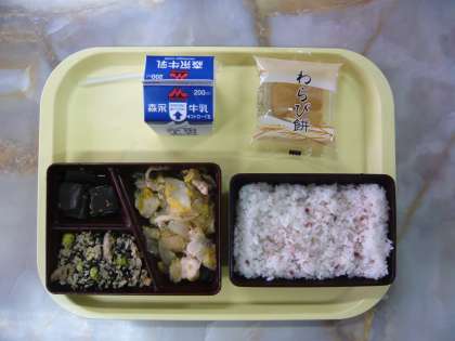梅ごはん、とりすき焼き風にこみ、卯の花、雷こんにゃく
