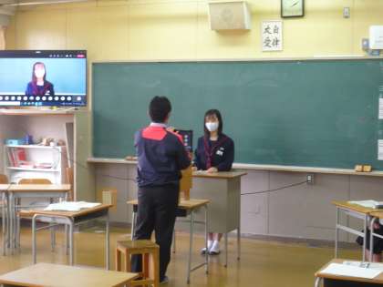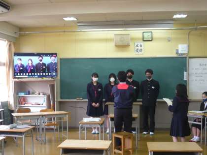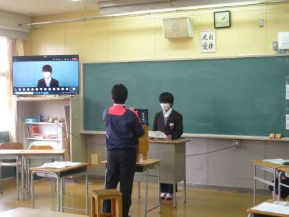 後半は、1・2年生の学級委員会から各学年の現状と課題、3年生からのアドバイス、「3年生からのバトン」と題して、3年各学級代表からの話がありました。