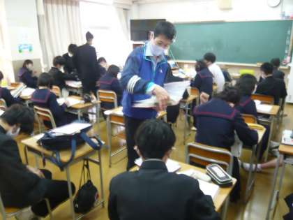 1限、3年生は学級特活です。1年間の取り組みの振り返りや3年生の総合で学習したことの作文や感想文を返却してもらったりしています。1組・2組の様子です。