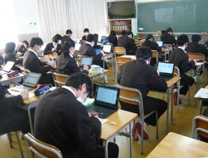 3限、1年3組は国語、作文の授業です。テーマは「国語を通して学んだこと」とありました。1年4組は理科、地層の勉強です。