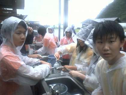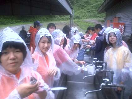 午後4時15分、渓流釣りのチームへ向かいましたが、すでに釣りは終わり、魚を調理しているところでした。