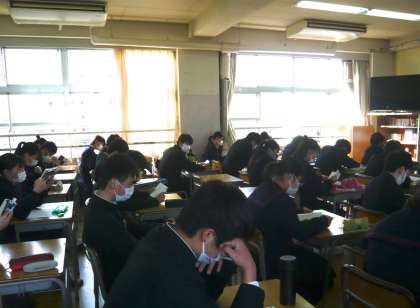 2年3組、4組の「朝読」の様子です。