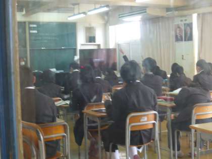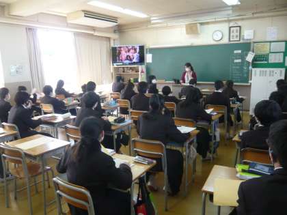 2限、1年3組は音楽、アジアの音楽についてです。ちょうど、馬頭琴の話を聞いていました。「スーホの白い馬」を思い出しているかもしれません。1年4組h英語、英語で歌を歌っているところでした。