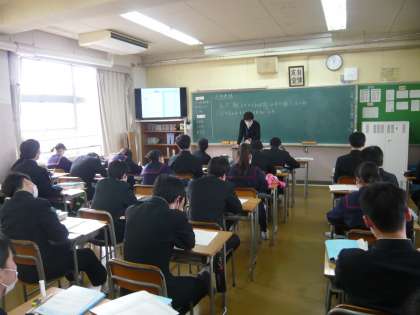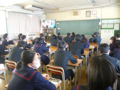 3限、2年3組は数学、「代表値」について学習しています。2年4組は英語、英語の字幕の洋画を見ています。鑑賞した後、映画の内容について交流するそうです。