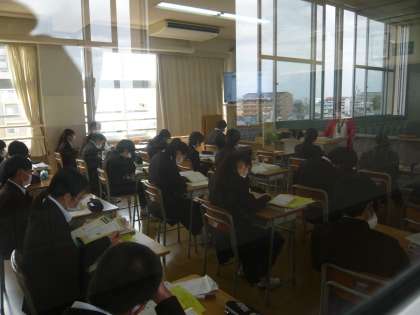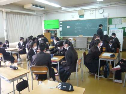 3限、1年1組は数学、何やら小グループで考えています。1年2組は英語、リスニングの課題に取り組んでいるようでした。