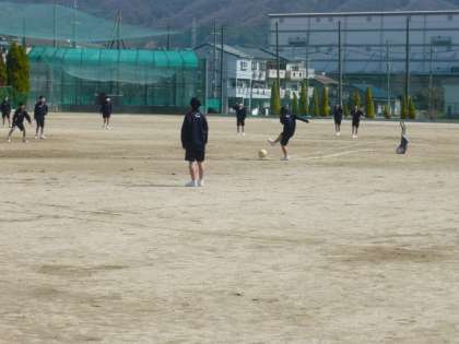 今日は、特別時間割です。2年生の学年集会を見た後、外に出てグラウンドを見ると、1年4組の単クラスでの体育が行われていました。男女混合でキックベースボールをやっていました。とても楽しそうです。
