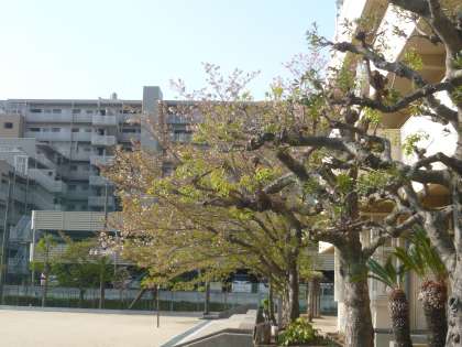 4月8日(木)、1学期始業式の朝を迎えました。さわやかな朝です。桜はすっかり葉桜になっています。