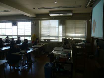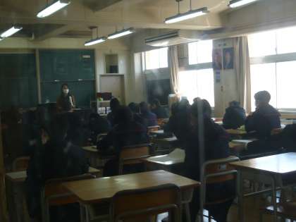 2限、3年生は教科の授業です。3年1組は音楽、2組は美術。教科学習についてのお話や作品制作の構想についてのお話を聞いていました。