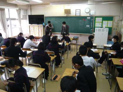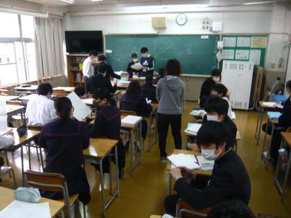3限、3年3組は英語、ちょうど実力テストのテスト返しが終わったところでした。3年4組は理科、こちらはテスト返し真っ最中です。