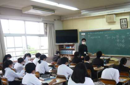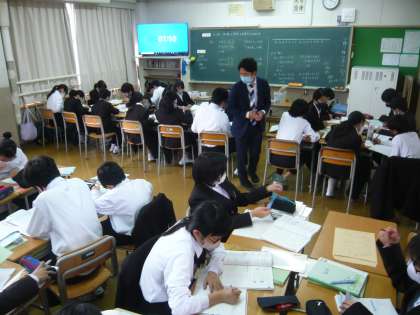 3限、2年3組は数学、分数の文字式を学習しています。1年1組も数学、正の数、負の数の減法です。1年経つと、内容も難しくなるというのを実感しました。数学は毎日の積み重ねです。生徒の皆さん、がんばりましょう。