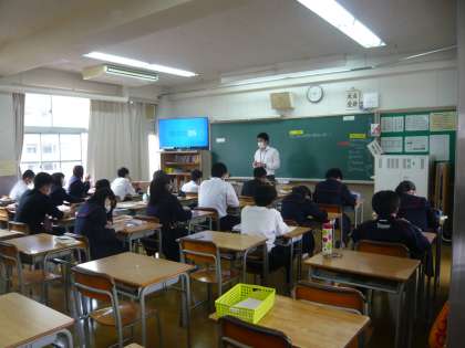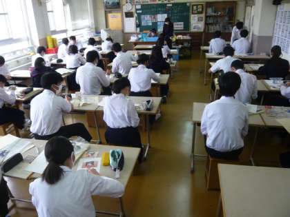 1限、3年3組は美術、自作の「アバター」の写真にコメントを書いていました。3年4組は英語、分割で英文を読み解く学習をしています。