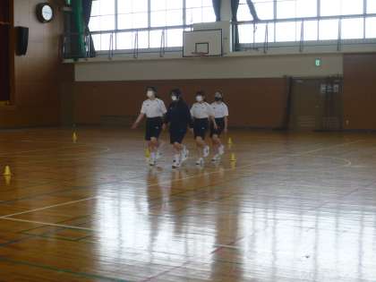 1限、2年3組の女子体育は、集団行動のテストです。