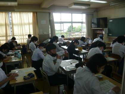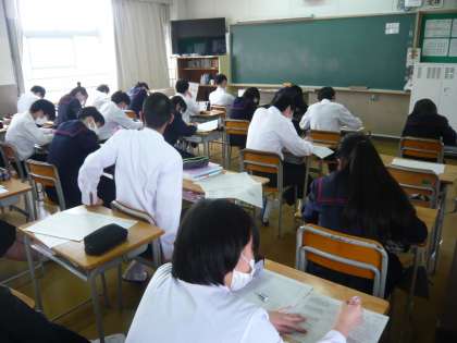 6限目、3年生は特活で実力テストの反省と、「二者懇談シート」を記入していました。「二者懇談シート」では、進路・学習・生活について各自記入する項目がありました。