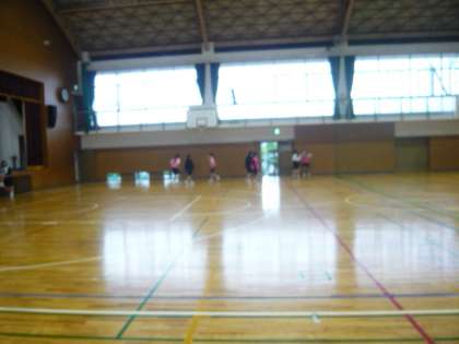 2限、2年3組の体育は体育館で行っています。男子は体力テストで、反復横跳びをしているところでした。女子は、バスケットボールです。