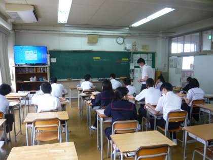 2限、3年1組は英語分割授業、単元テストに向けての学習です。3年2組は理科第二分野、遺伝子について学んでいます。
