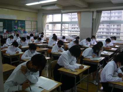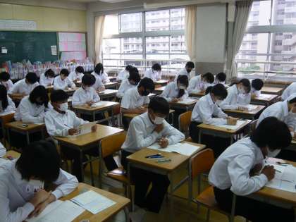 2年生は、大東市共通到達度確認テストに臨んでいます。1限国語の様子です。