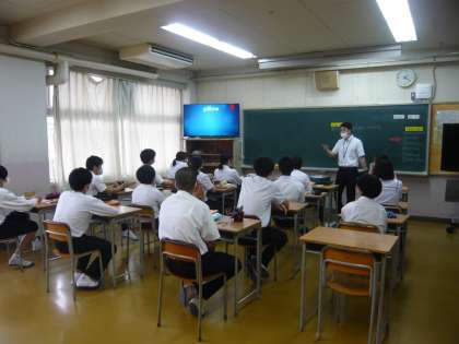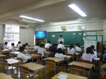 1限、3年4組は英語、単語の発音を練習しています。
