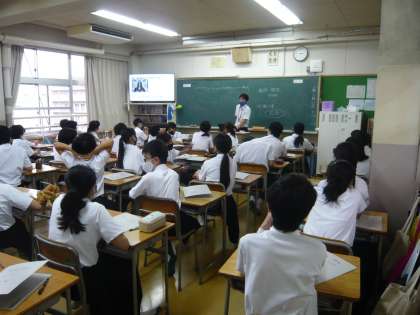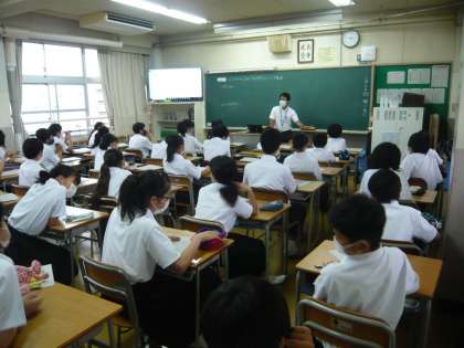 6限、1年生は、総合で障がい者問題学習に取り組んでいます。バリアフリーとユニバーサルデザインについて学習しています。