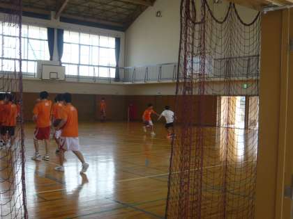試合を控えている体育館クラブが複数重なっていいるため、男子バスケットボール部は朝練習を行っています。