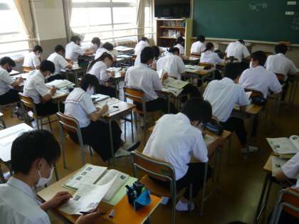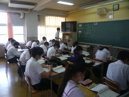 2限、3年1組は社会、確認テストに向けて勉強中です。3年2組は数学分割授業、平方根の学習です。