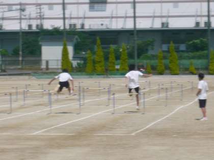 5限、3年3・4組の男子体育は、グラウンドでハードル走でした。さすが3年!という走りをしていたので写真を撮りましたが、タイミングが難しいですね。写真よりずいぶん迫力のあるハードル走でした。