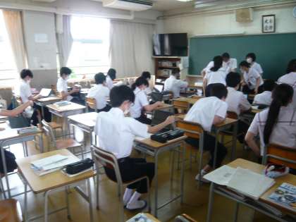4限、3年1組は家庭、幼児の心の発達を考えていきます。3年2組は技術、これからタブレットを使って調べ学習をするようです。