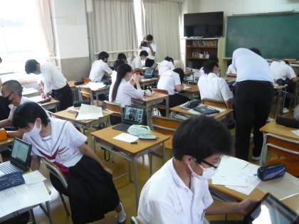 6限、3年生は班ごとに「高校調べ」をしています。