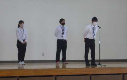 朝の全校集会であいさつをしていただきました。今日1日、がんばってください。