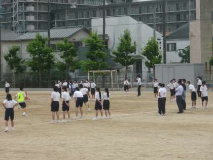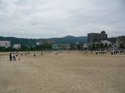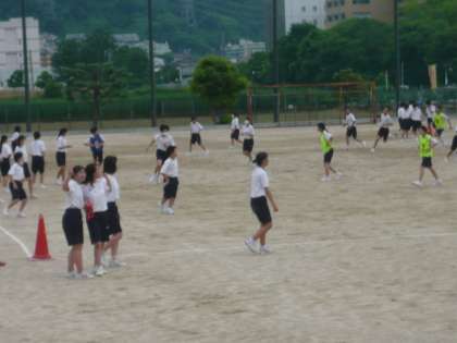 6限、2年生はグラウンドで学年レクをしています。天気がもって良かったです。