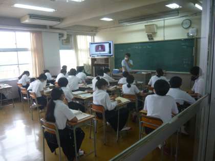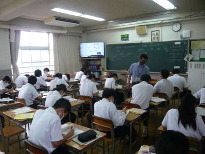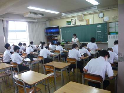 4限、2年1組は理科、化学変化についてです。2年2組は英語分割授業、「話者の言いたいことをとらえる」という本時の目標でした。